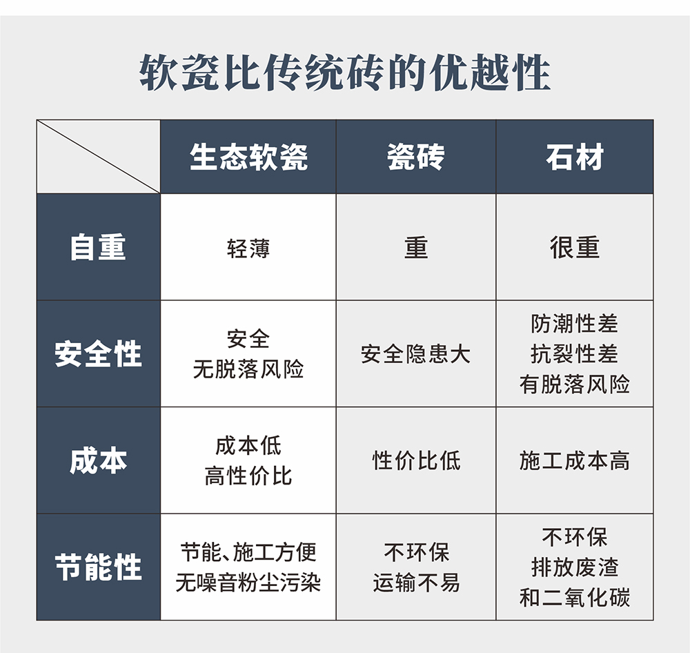 薄讓空間更充裕,每片厚0.2-0.4CM而傳統軟瓷厚度1CM左右。