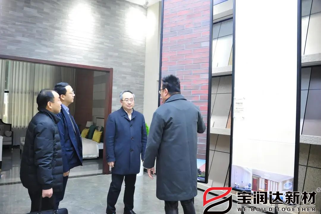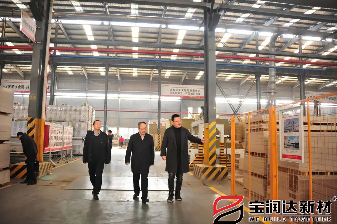 2月16日,懷寧縣委書記余學(xué)峰、懷寧縣政府副縣長譚憲鋒、懷寧縣縣委辦主任劉勁松、懷寧縣招商中心副主任關(guān)飛一行蒞臨寶潤達進行調(diào)研,寶潤達新材總經(jīng)理朱正葉、總經(jīng)理助理張曉光熱情接待。