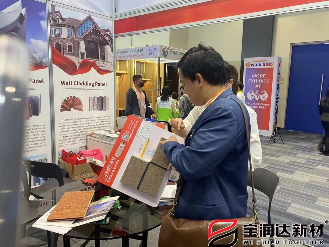 在此次世界級的展會中,寶潤達與菲律賓買家進行了面對面的交流,并向客戶展示了先進的節能建材產品與節能環保的生態理念。